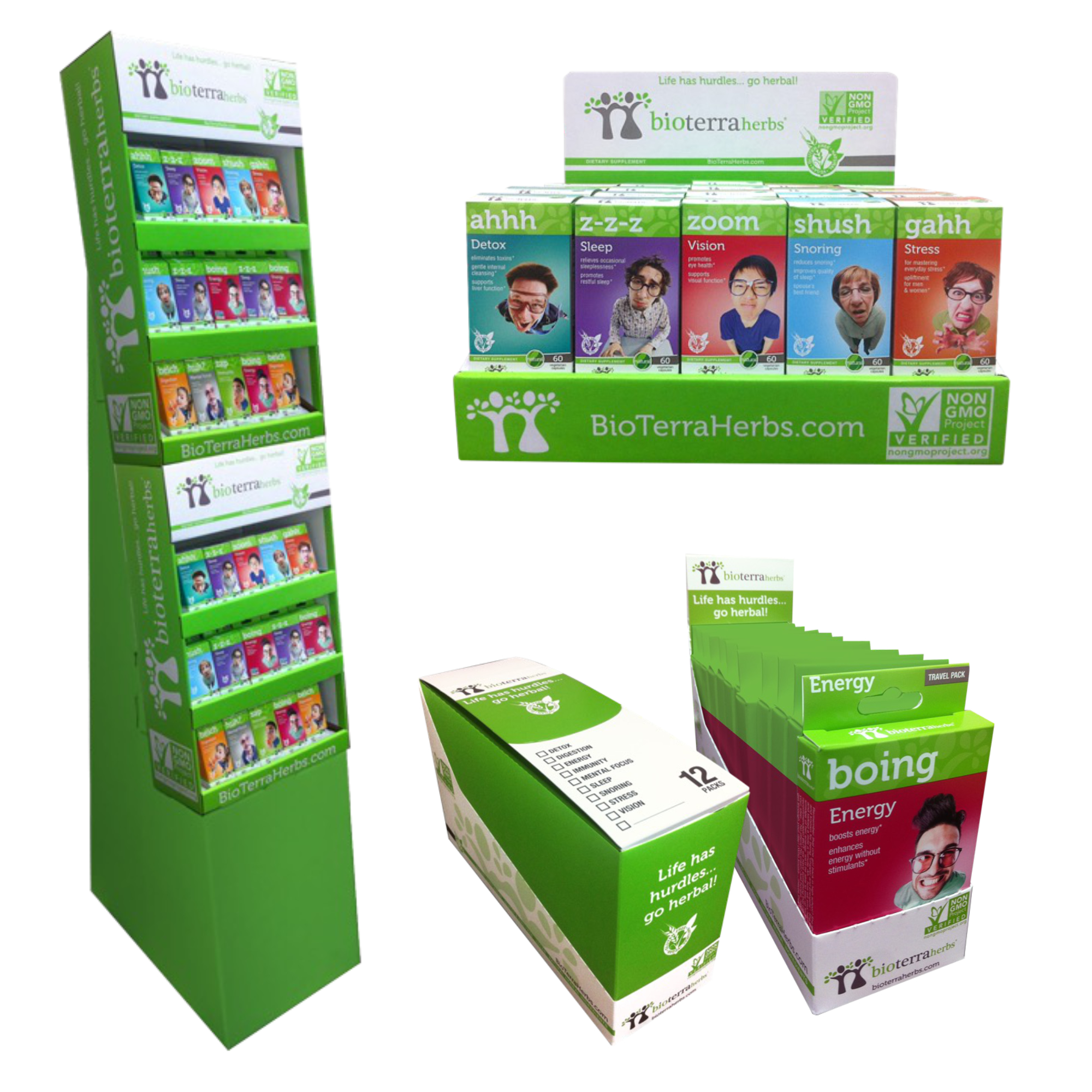 Bioterra had a line of supplements that they wanted a design direction for. Our team was given the opportunity to created the packaging and POP displays.