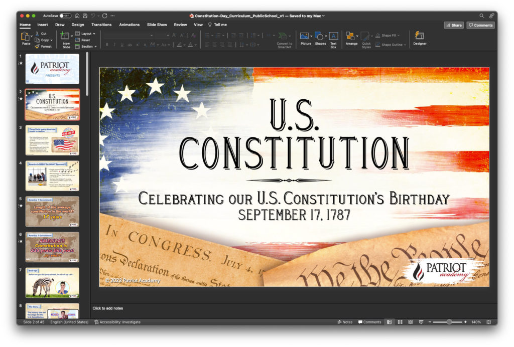 Constitution Day & Citizenship Day in the United States was adopted into Federal law in 1998 (36 U.S. Code § 106 – Constitution Day and Citizenship Day; § 108 – Constitution Week). The Patriot Academy team needed help creating some curriculum for schools to commemorate the day.