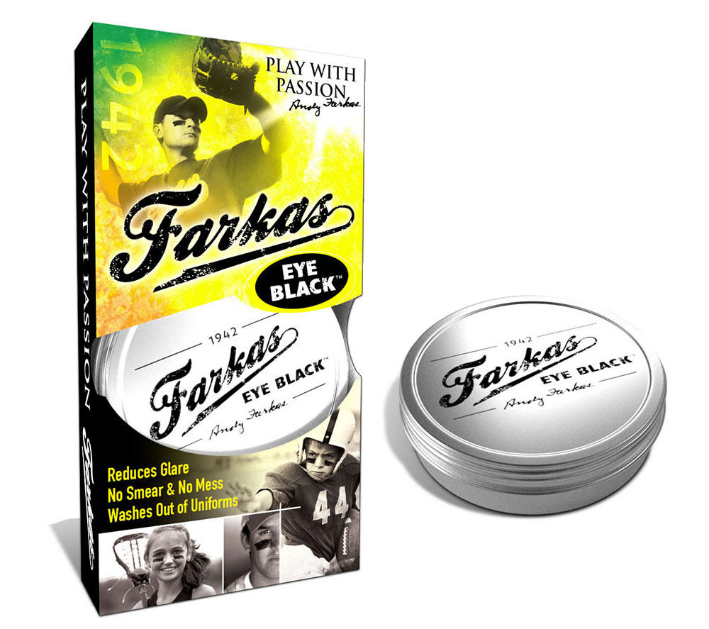 “Packaged in a silver tin, Farkas Eye Black has been developed for the serious athlete by Yale doctors. Today, it is widely considered to be the best at reducing glare, staying in place, and washing out of uniforms.”