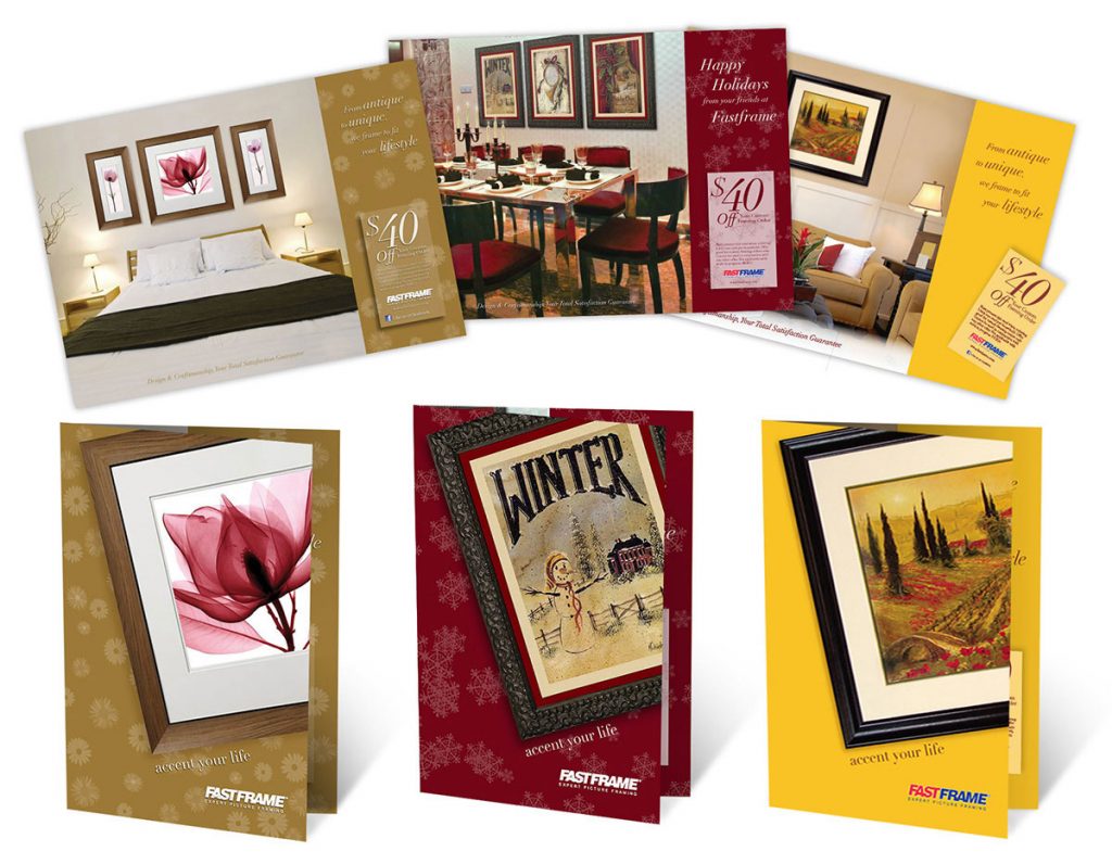 FastFrame is a nationwide chain framing company that offers a wide range of framing solutions to their customers. They hired our team to design seasonal mail pieces.