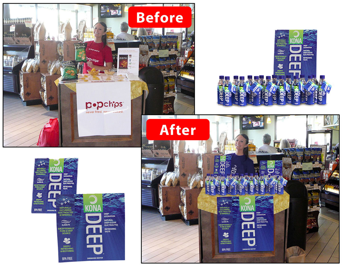 Sometimes I am asked to create an image for an event that didn’t exist. For Kona Deep, they wanted an image for a presentation to show how they would promote their products in-store. This image was created using 3D models of the product, and various signage graphics, all arranged to depict the scene the client required.